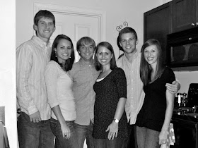 Last night, we went out to eat for my friend, Caitlyn's birthday. We went to a very fun restaurant called Chow Baby. It is buffet-style stir fry and it was DELICIOUS. Afterwards, we had everyone over to our place where we played a heated game of Scattergories. I also like any excuse to bake, so I made a cake. Here are some pictures the prove we have friends. Kidding... but seriously, these are our friends Caitlyn and Chris Joiner and Heather and Matt Nelsen.