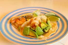 5. Build your taco! Spoon some cilantro sauce on the tortilla, and fill with shrimp and cabbage. I also added some sliced avocado... because let's be real- fresh avocado makes everything better.