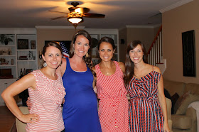 Yesterday, we spent the day at our friends' neighborhood pool all day. The husbands played everything from four square to water volleyball to the watermelon relay while we sat at the edge of the pool to cheer them on. After that, we headed back to their house for a cookout and some hang out time. Later, we were determined to find some fireworks so we ended up catching some a couple miles from their house in