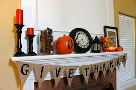 given that my house has been decorated since Labor Day. Outside, it may still be 80 degrees, but my house is now a haven of pumpkins, burlap and orange... and it smells like cinnamon. I have discovered that having this blog has challenged my decorating skills, because I always feel the need to change it up so that it's not identical to last year's post. I like to call this decorating accountability. So here we go...