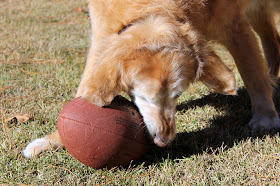 Even twelve year old Bentley got in on the fun and chewed up the husband's football. Good to see he's still got some spunk left. Bentley- not Dustin.