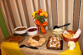 If you combine all of the above, your Thanksgiving food table will look something like this. I wasn't able to take pictures of each dish, because the food was ready and we had a hungry crowd! Enjoy!!