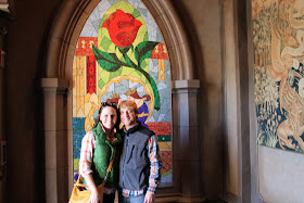 We had lunch at the new restaurant in Fantasyland that has the coolest concept. You get this rose when you order at the counter and it has a GPS tracker in it, so they can find you in the large ballroom. It also has your party size stored in it so they know what size tables are available and you never have people wandering around looking for open spots. Love. Disney.