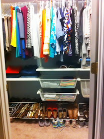Back in June, our master bedroom closet shelves collapsed and we've just now gotten around to fixing it thanks to my crazy busy summer. While I would've loved a California closet from the container store, this is probably the absolute last room in the house where I want to actually spend money. So the obvious solution?