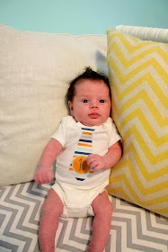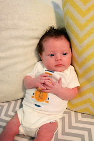 - You moved to your crib in your own room at exactly one month. Mommy may have been a little hesitant to do this, but you seem to be liking it so far. In all fairness, you were two weeks old when we came home.