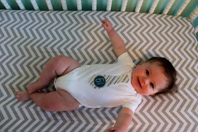 Well it is hard to believe that you are five months old, little man! You are showing us so much of your personality that it feels like every day there is something new. There are some things I wish would stay the same forever, like the fact that you are so in love with your mommy and daddy and think we are the funniest people on the planet. Seriously, your sweet little laughs just warm our hearts! There are also things right now that I wish would pass quickly. We are trying to break you of your swaddle and you are not a happy camper about it. You are such a great sleeper that it breaks our hearts to hear your cries in the middle of the night. But because you are a champ at rolling from your front to your back and getting better at rolling from your back to your front, we really need to get you out of that swaddle. You really love playing with your toys on your play mat now and have also become quite the squirmer. You know when we are heating your bottles and stare at the warmer until it's done. Once it's done, you immediately begin reaching towards it with an open mouth! Here are some highlights from the month.