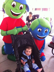 We went to Children's Transplant night with the Braves for my work and you got to stroll around the field. While you were quite underwhelmed with it now, I'm sure you'll look back on it and think it was cool.