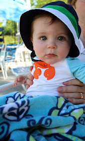 he tried to sit down. We go to the beach next month, so we'll see what you think of the ocean...