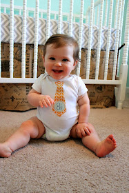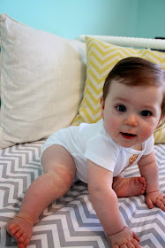 Baby boy, we love you more than words can say. Your personality is really starting to show and you are such a fun little guy! Your daddy and I just smile at each other thinking about the fun little boy you are turning into (much too quickly!) You LOVE to show off those two teeth with open mouth smiles and lots of giggles. You give us big wet open mouth "kisses" on our faces and it melts our hearts. You still love jumping in your jumper and doing anything outside. You love sleeping on your side and tummy and we can usually find you doing push ups in your crib when we get you up in the morning. Our most favorite thing you're doing right now is when you lift your arms towards us while sitting down for us to pick you up. It is just the sweetest! You think we are just about the best thing around. You love eating, sleeping and playing- what more can we ask for?