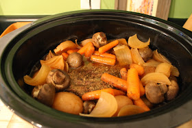 Yes, I realize it has been quite a while since I posted anything remotely close to a recipe on here, but here's to hoping this gets me back in the habit. I've learned that with an active baby/toddler, the slow cooker really is your best friend. You can throw everything in there the night before or even during nap time and stick it in the fridge until it's time to start cooking. This morning's cool fall temps make it a great day for a savory roast with veggies. This is quite possibly the easiest dinner as there is little to no preparation and the finished result is so yummy.