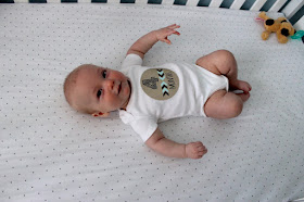 We don't go to the doctor until next week, so I'll post your stats then. My guess would be that you're well over 14 lbs and quite a bit longer. You're still fitting in 3 month clothes, but they're getting pretty snug and I feel like we'll be in 6 month in a couple weeks. You're still in size two diapers. You've started laughing regularly and we'll do just about anything to make you laugh! You are still sleeping like a champ. You sleep 12 hours at night and are more than ready for bed by 6:45 PM. In typical second child fashion, your morning nap is less than consistent as we're usually on the go somewhere. You catch up during afternoon nap by sleeping 3 hours like your brother! You love to eat and have been eating every three to four hours. We are so blessed to be your mommy and daddy and love you to pieces,  sweet boy!