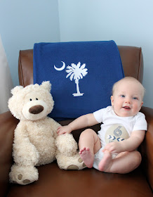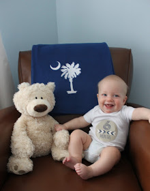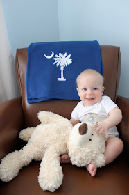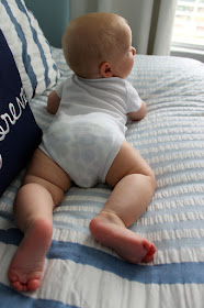 You started solid foods and typically eat three meals a day and still nurse five times. Since four months, you have refused anything resembling a bottle. Since I stay at home, it's not a huge issue, but it does make getting out of the house a challenge at times. You're a good sleeper- not as great as your brother, but we can't complain! You sleep from about 7pm-5:30am. On a good night, you'll fall back asleep on your own and make it until around 6:30am. Your morning nap is less than consistent as it really just depends on what we're doing that day or where we are. You take a great afternoon nap with your brother so I can usually get 2-3 hours to myself in the afternoon (!)