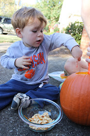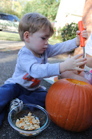 We started Friday off by going to a pumpkin patch with some friends. Finn loved it! No surprises there. He found a wagon in the first five minutes and pulled it for the entire two hours. He filled it with pumpkins and his friends.