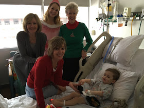 The highlight of our Christmas Day (and really our hospital stay all together) was a surprise visit from Dustin's aunt, uncle, grandmother and cousin! Since we were not able to make the drive to Waco (after coming all the way to TX!), they took the time to drive from Dallas, Waco and College Station to visit us and give our sweet little guys some Christmas cheer!