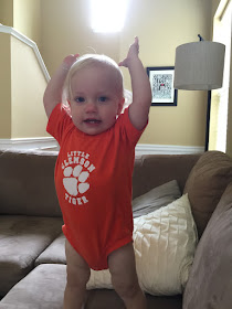 Our sweet baby boy turned 15 months on June 19th, so I'm just happy to get this post up before he's 16 months. Ryder, you are a walking, talking toddler baby now! I refuse to not call you the baby. You love to eat and really dislike not eating if you're hungry (sorry, you get that from mommy). You're a great sleeper and would be ready for bed at 5pm. You still enjoy waking up between 5:30 and 6AM regardless of what time you go to bed, so some nights you are in fact in bed between 6 and 6:30. You are taking right after your big brother and love to be outside. You will get your feelings hurt in the worst way if daddy takes Finn outside and not you, so most afternoons are spent playing with Finn and daddy in the driveway. Now that you can walk, you want so badly to keep up with Finn, but still don't quite understand why you can't run as fast. You can say "mama", "dada", "truck", "uh-oh", "this", "that", "milk", "hi" and probably a few other words that I can't remember. You still are pretty obsessed with all things relating to Finn- eating together, riding in the car together, playing, bath time and bed time together. You love dogs and make the sweetest little squeal every time you see one- no matter how far away it is. You love stuffed animals and especially love snuggling them, biting them and carrying them around.