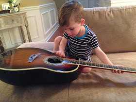 Finn found Dustin's dad's old guitar and this has now become a nightly routine. His biological side of the family is incredibly talented when it comes to music (us not so much) and so far he's taken a huge interest in it. He names instruments when he hears them in songs and wants to play them all.
