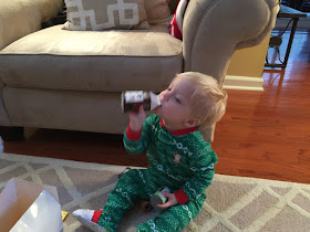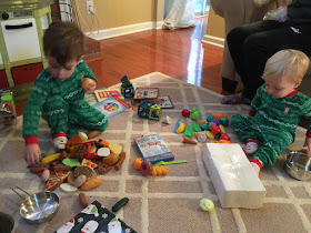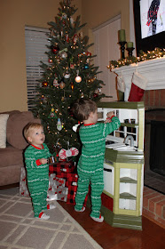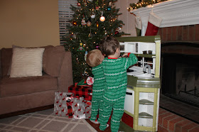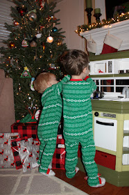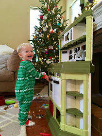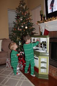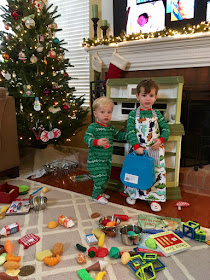Santa came! The boys are absolutely obsessed with playing with kitchens at their friends' houses, church, school, etc. so we knew this would be perfect for this year. Santa also got this boy-colored kitchen at a consignment sale back in September. Win. Win.