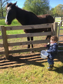 After a morning of seeing horses, eating Chick Fil A, playing outside and an Easter egg hunt, this one wanted me to lie down for him for nap and this was 3 minutes after he was in bed. Also worth mentioning, Finn is super attached to his sleep sack and that may be the hardest thing to get rid of once he gets his big boy bed this summer. If we didn't need his crib for new baby brother, he might stay in a crib until kindergarten. For. Real.