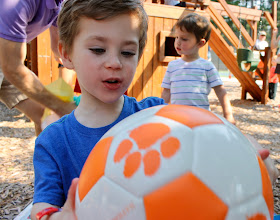 You are sweet and spunky and full of joy. You have two speeds- 100mph and asleep. You love anything having to do with Cars or Lightning McQueen right now, which goes hand in hand with your need for speed. You have always been our "runner" and one of the things you say the most now is "want to see how fast I am?!" I have been the mom at the park sprinting full speed after you more times than I can count and I can still barely catch you. You have your own way of doing things and love to figure it out for yourself. I just have the hardest time remembering to let you. You can get your own water from the fridge, snacks from the pantry, dress yourself, brush your teeth and use the potty. You can also buckle and unbuckle yourself in the car which has graduated you to big boy status in that you now sit in the third row. You love helping me clean and unload groceries. You love helping daddy in the yard or really just doing anything outside with daddy. Your favorite sports are soccer and golf, but love watching the Clemson tigers on TV.