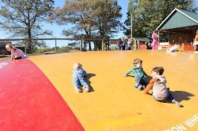 We got to the apple farm, and we let the big boys jump on this bouncy pillow thing that was most certainly one big staph infection waiting to happen but they loved it and I had to feed Jude.