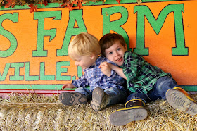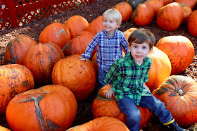 Then, we headed to Burt's Pumpkin Farm down the road for a tractor ride and a chance to see some really big pumpkins because let's be honest, we buy our real pumpkins from Trader Joe's for a third of the price. Nonetheless, the boys had fun and it made for some good photos. This was our second trip to Burt's. Our first was when Finn was 13 months old and I was newly pregnant with Ryder.