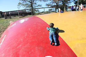 We got to the apple farm, and we let the big boys jump on this bouncy pillow thing that was most certainly one big staph infection waiting to happen but they loved it and I had to feed Jude.