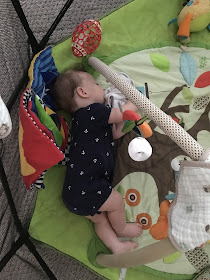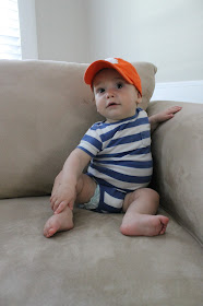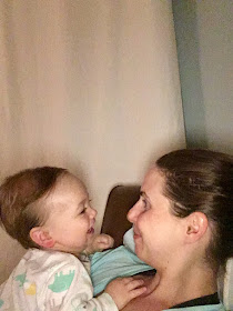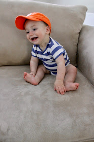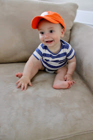 You are still barrel-rolling your way around the house but just this past week you've started army crawling! You are most proud of this and once you get from point A to point B, you look up with a gummy grin and a little giggle.