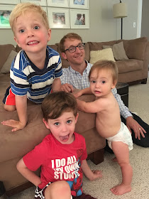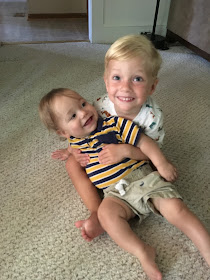 If you've had a morning nap, I'll wait until after I put your brothers in their rooms for rest time before I put you down for an afternoon nap and here is where I usually find you.
