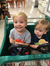 Because of this, I know you're up to 20lbs. You're in size 12-18 mo clothing, but most of it has already been through your brothers and is probably not true to size.