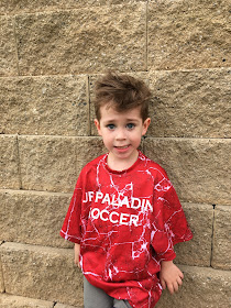 You love playing on your soccer team. It's a pre-k/kindergarten league that practices and plays on Saturday mornings, but in your mind it may as well be the World Cup. You give it all you have every game and you're getting pretty good too. What I'm most proud of you for is that you're the first one to check on a teammate when they fall down- on either team.